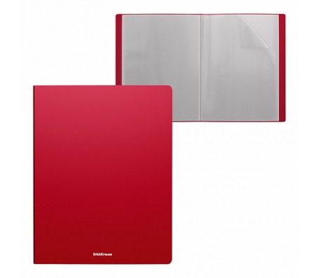 Папка PVC А4 е направена от висококачествена пластмаса с повърхностна текстура "пясък", върху която не се виждат пръстови отпечатъци и малки драскотини. Предназначена за съхранение на документи. Папката съдържа 10 прозрачни джоба, здраво закрепени чрез заваряване. Цветът на папката е червен. Побира до 100 листа хартия. Размер - 231х310х17 мм, дебелина - 0,4 мм.