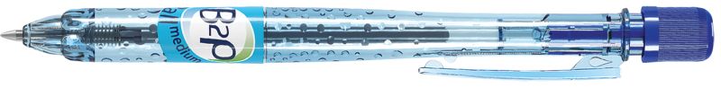 B2P: От бутилка до химикалка! Химикалката на B2P има пластмасово тяло, рециклирано от пластмасови бутилка. Удобна, забавна и екологична писалка. Оформена като бутилка с вода и с издръжливо топче от волфрам. Осигурява изключително удобно писане благодарение на сцеплението и усъвършенстваното маслено мастило. Презареждането на този продукт го прави по-икономичен и опазващ околната среда.