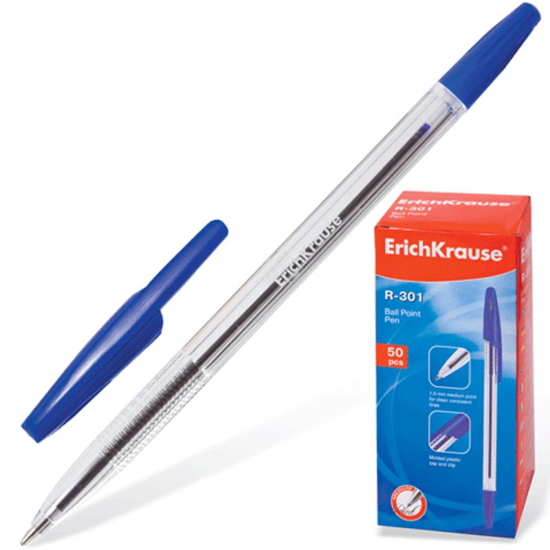 Класическа стик химикалка със стандартен връх и сменящ се пълнител. Химикалката има прозрачно шестоъгълно тяло с удобна профилирана грип зона и вентилирана капачка. Цветът на капачката и накрайника отговарят на цвета на мастилото. 5-каналният връх и 1.0 мм диаметър на топчето, в комбинация с бързо-съхнещото мастило осигурява меко и удобно писане. Дължината на линията на писане е 2000 м с дебелина на писане 0.5 мм. Моделът R-301 Classic 1.0 stick има разпознаваща се патентована форма и се превърна в абсолютен бестселър сред пишещите продукти Erick Krause в повече от 50 държави по света.