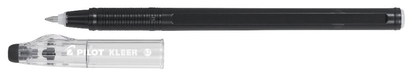 Да живее свободата! Свободата да се колебаете, да правите грешки, да промените мнението си, да напишете нещо и след това нещо съвсем различно ... Новото изтриващо се мастило на Pilot Kleer е там, за да изтрие грешките. Pilot Kleer ви дава възможност да започнете отначало и да пренапишете. Pilot Kleer дава възможност на вашите идеи да полетят и неговата достъпна цена ви дава крила! Надеждното и издръжливо топче от волфрам, съчетано с усъвършенствано мастило на маслена основа, осигурява меко и гладко писане.