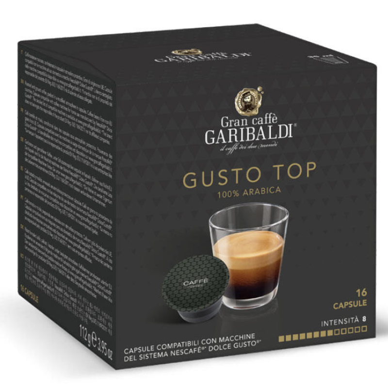 Кафе на капсули GARIBALDI Gusto Top – ароматен микс от най - качествените Арабика зърна, характеризиращи се с вкусни нотки на шоколад и плодове.