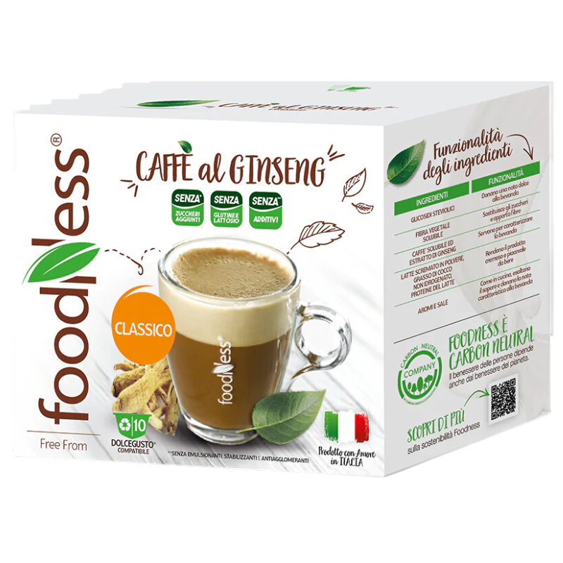 Освежете деня си с FoodNess Ginseng Coffee Classic – кафе капсули, които комбинират богатия вкус на кафе с енергизиращите и адаптогенни свойства на женшен.