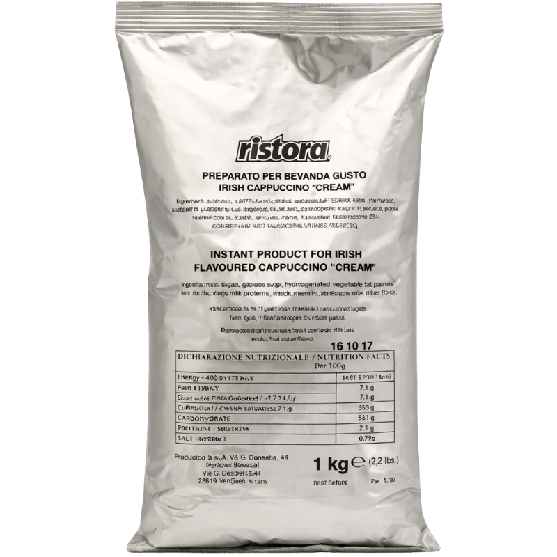 ☕ Открийте неустоимото съчетание на италианско кафе и ирландски крем с Ristora Irish Cappuccino! ☘️ Този 1 кг пакет е перфектен за вендинг автомати, професионални кафемашини и за моменти на домашно удоволствие.