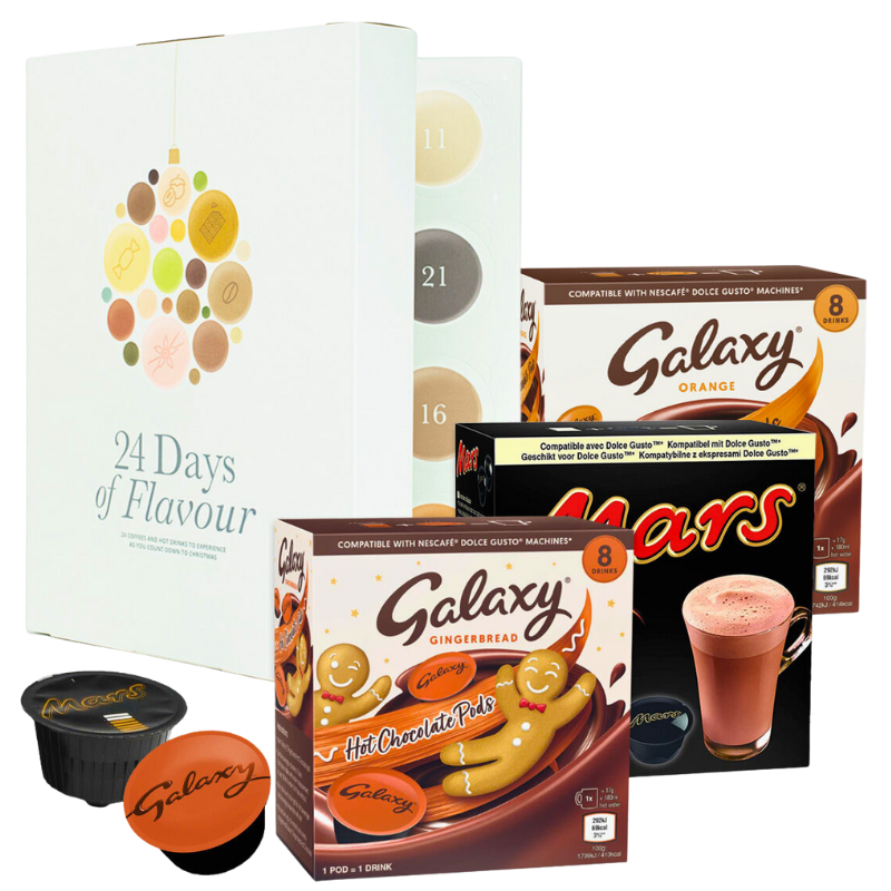 Потопи се в празничното настроение с този коледен кафе календар – 24 изненади за всеки ден до Коледа! Всяка капсула е съвместима с Dolce Gusto машини и предлага различен вкус – от инстантни напитки до ароматно капучино, шоколад и специални празнични блендове.
