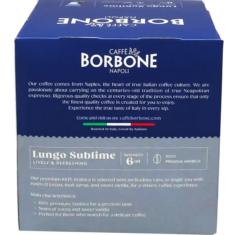 Открийте изтънчения вкус на Кафе капсули Borbone Lungo Sublime, специално създадени за вашата Dolce Gusto® машина! ☕ Насладете се на всяка глътка от това 100% Арабика кафе, което ще ви пренесе в свят на съвършен вкус и аромат.