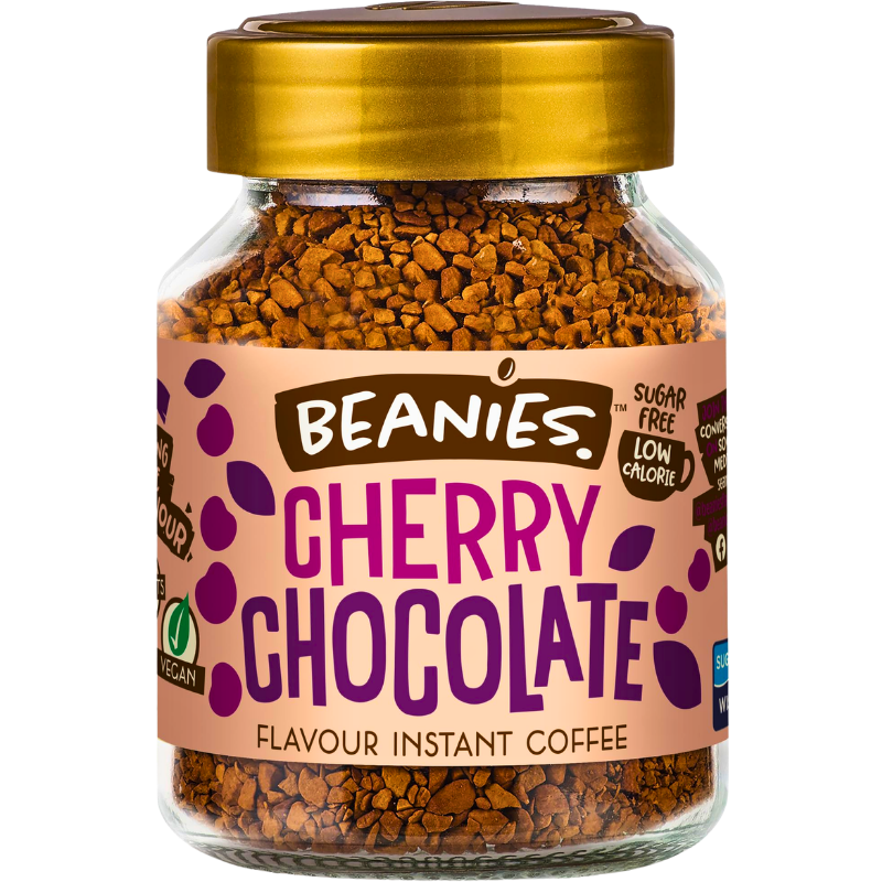 Насладете се на неустоимо вкусно и ароматно кафе с Beanies Cherry Chocolate! 🍒🍫 Това разтворимо кафе съчетава вълнуващ вкус на сочни череши и изкусителен шоколад, превръщайки всяка чаша в истинско удоволствие.