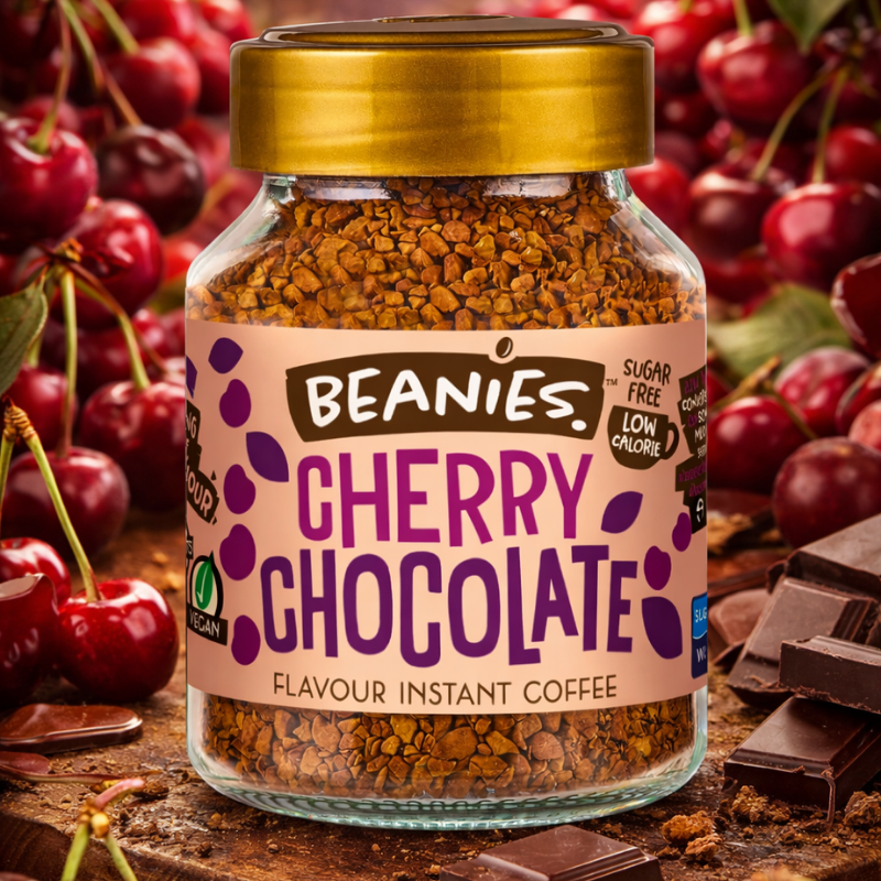 Насладете се на неустоимата комбинация от череша и шоколад с разтворимо кафе Beanies Cherry Chocolate! 🍒🍫 Този изкушаващ микс ще превърне всяка чаша кафе в истинско удоволствие.